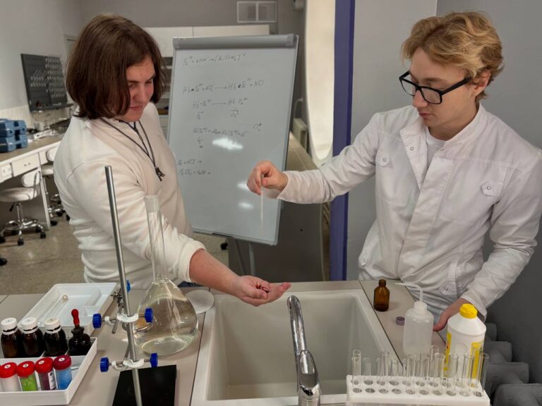 В кабинете естественно-научной направленности кванто-класс «Химия» провел специалист Даниил Костенко. Во время занятия школьники познакомились с одним из важнейших закономерностей аналитической химии – роданидным методом – и оценили потенциал современных методик в выявлении скрытых особенностей химических составов.