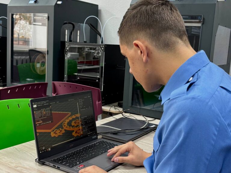 Специалист технолаборатории «3D-моделирование и обработка материалов» Петр Худобин продемонстрировал учащимся возможности 3D-принтеров Bizon3, Zenit, представил современное оборудование с числовым программным управлением марки Xtool, объяснил особенности изготовления декоративных изделий, рекламно-информационных вывесок, макетов и дизайн-образцов, создаваемых посредством лазерной резки и гравировки.