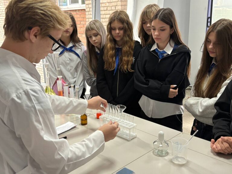 В кабинете естественно-научной направленности специалист Даниил Костенко представил практико-ориентированный обзор темы «Физические и химические явления и их основные признаки», в которой проиллюстрировал яркие примеры того, как физические и химические процессы проявляются в нашей жизни. Особое внимание специалист уделил уникальному явлению – роданидной крови, которая служит ярким примером взаимодействия химических веществ и физических условий. В ходе экскурсии школьники узнали, как происходят химические реакции в организме и окружающей среде, а также как физические свойства веществ помогают в диагностике и исследовании различных химических соединений, что важно для науки, медицины и промышленности.
