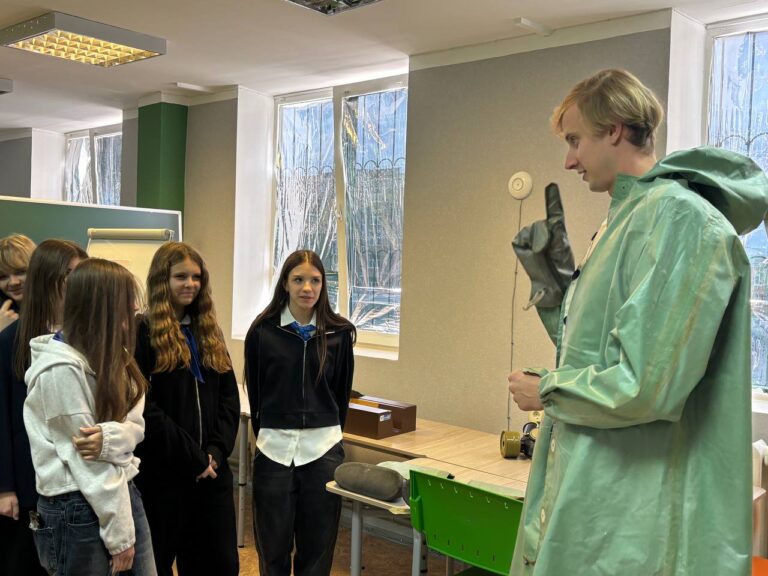 В кабинете для изучения ОБЗР методист Эдуард Пащенко подготовил для обучающихся информацию о правилах использования базовых средств индивидуальной защиты (противогаза, респиратора, костюма химзащиты). На примере макета простейшего укрытия ребята узнали о его основных функциях, конструктивных особенностях, возможных модификациях и усовершенствовании укрытия для повышения его функциональности и комфорта, принципах устойчивости и безопасности. Участники экскурсии обсудили тренировочные сценарии защиты, эвакуации и укрытия в условиях чрезвычайных ситуаций при радиационной, химической и биологической угрозах, на практике изучили устройство и правила обслуживания автоматического стрелкового оружия, используя макет учебного автомата АК-74М.