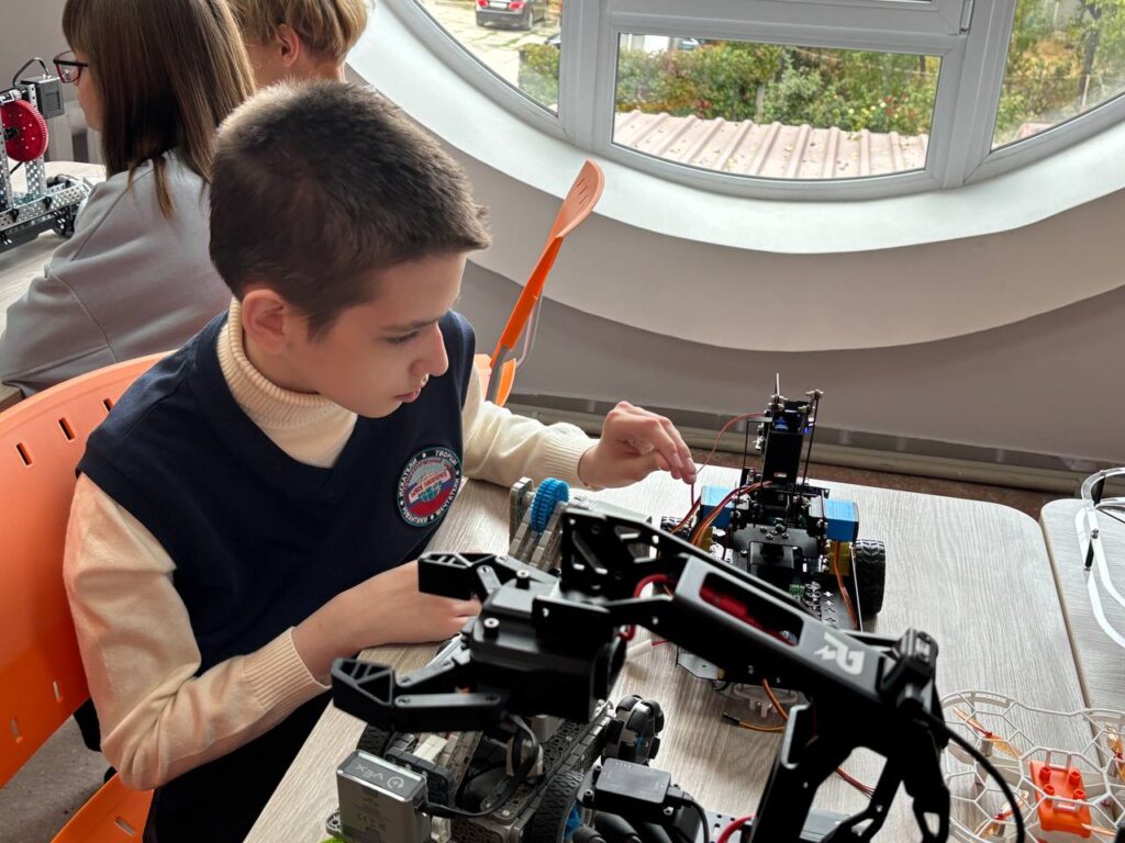 Отработать начальные навыки управления и полета с помощью программируемого квадрокоптера WhalesBot Eagle 100, ознакомиться с основами конструирования и сборки роботов на базе платформы VEX IQ и выполнить практические задания по передвижению роботов-конструкторов на поле с соревновательными элементами, участники экскурсии смогли под руководством специалистов кабинета технологической направленности Станислава Кременчуцкого и Ефима Мохнатого.